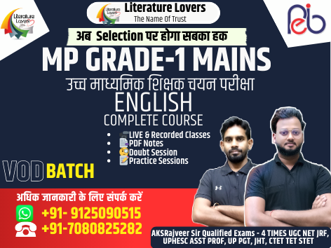 In this course, AKSRajveer Sir and Team will teach MP GRADE-1 MAINS Exam Course English (उच्च माध्यमिक शिक्षक चयन परीक्षा 2023) Complete the course according to Latest Syllabus. It will be helpful for the aspirants preparing for MP TET GRADE-1 MAINS Exam. This course will be conducted in Hinglish and notes will be provided in English. MP GRADE-1 ENGLISH उच्च माध्यमिक शिक्षक चयन परीक्षा यह ऑनलाइन कोर्स उच्च माध्यमिक शिक्षक चयन परीक्षा के अन्तर्गत MP GRADE-1 ENGLISH विषय के परीक्षा के संपूर्ण पाठ्यक्रम पर आधारित है। इस ऑनलाइन कोर्स की प्रमुख विशेषताएँ – 1.LIVE/ रिकॉर्डेड वीडियो कक्षाएँ- यह कोर्स विद्यार्थियों की व्यापक तैयारी के लिए बनाया गया है। इस कोर्स की मुख्य विशेषता है कि COMPLETE COURSE AKSRajveer Sir and Team द्वारा Basic to Advance पढ़ाया जायेगा। Course की मुख्य विशेषताएँ निम्नलिखित हैः- (a) आप इन कक्षाओं को निर्धारित समय पर लाइव (Live) देख सकते है। (b)लाइव क्लास का नोटिफिकेशन आपको ऑटोमेटिकली अप्प पर आ जायेगा (c) आप इन classes को recorded सुविधानुसार कभी भी देख सकते हैं। (d) वीडियो Quality Low से लेकर Very High तक उपलबध। (e) Recorded Video डाउनलोड करके offline में भी देख सकते हैं। (f) Video Class के साथ ही उस क्लास की PDF उपलब्ध रहेगी। (g) Doubt Clearing Session समय-समय पर लिया जायेगा । Other feature Of the Course- (A)वीडियो की गुणवत्ता व गति (Speed) में परिवर्तन- विद्यार्थी अपनी सुविधानुसार वीडियो की गुणवत्ता व गति में परिवर्तन कर सकते हैं। (B)कोर्स की वैधता (Validity) इस ऑनलाइन कोर्स की वैधता कोर्स खरीदने के दिन से लेकर अधिकतम 6 months तक रहेगी (C)वीडियो रिकॉर्डिंग देखने की असीमित सुविधा-आप अपनी सुविधानुसार कोर्स की वीडियो रिकॉर्डिंग कोर्स की वैधता अवधि के दौरान कितनी भी बार देख सकते है। Faculty Members- AKSRajveer Sir- Founder and Director of Literature Lovers YouTube Channel,Qualified Exams- UGC NET/JRF in English 4 Time UP PGT Exam UPHESC Asst Prof CTET, TET, Super TET Kuldeep Yadav Sir- Literature and Grammar Expert